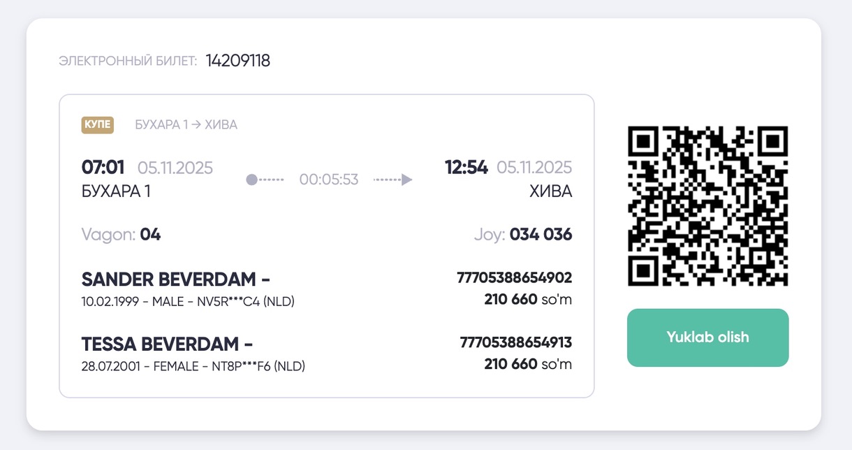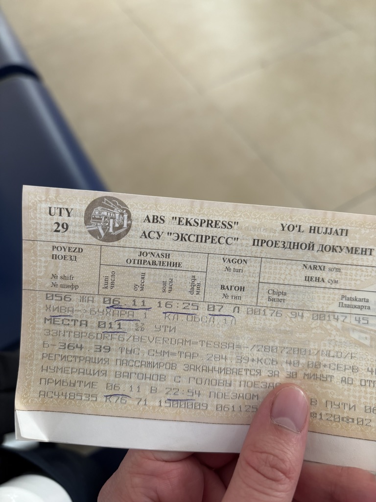 Buiten het hoogseizoen kun je vaak ook kort van tevoren of zelfs op dezelfde dag een ticket op het station kopen. Wij reisden in november en boekten bijvoorbeeld onze terugweg van Khiva naar Bukhara vlak voor vertrek ter plekke. Dit ging zonder problemen.