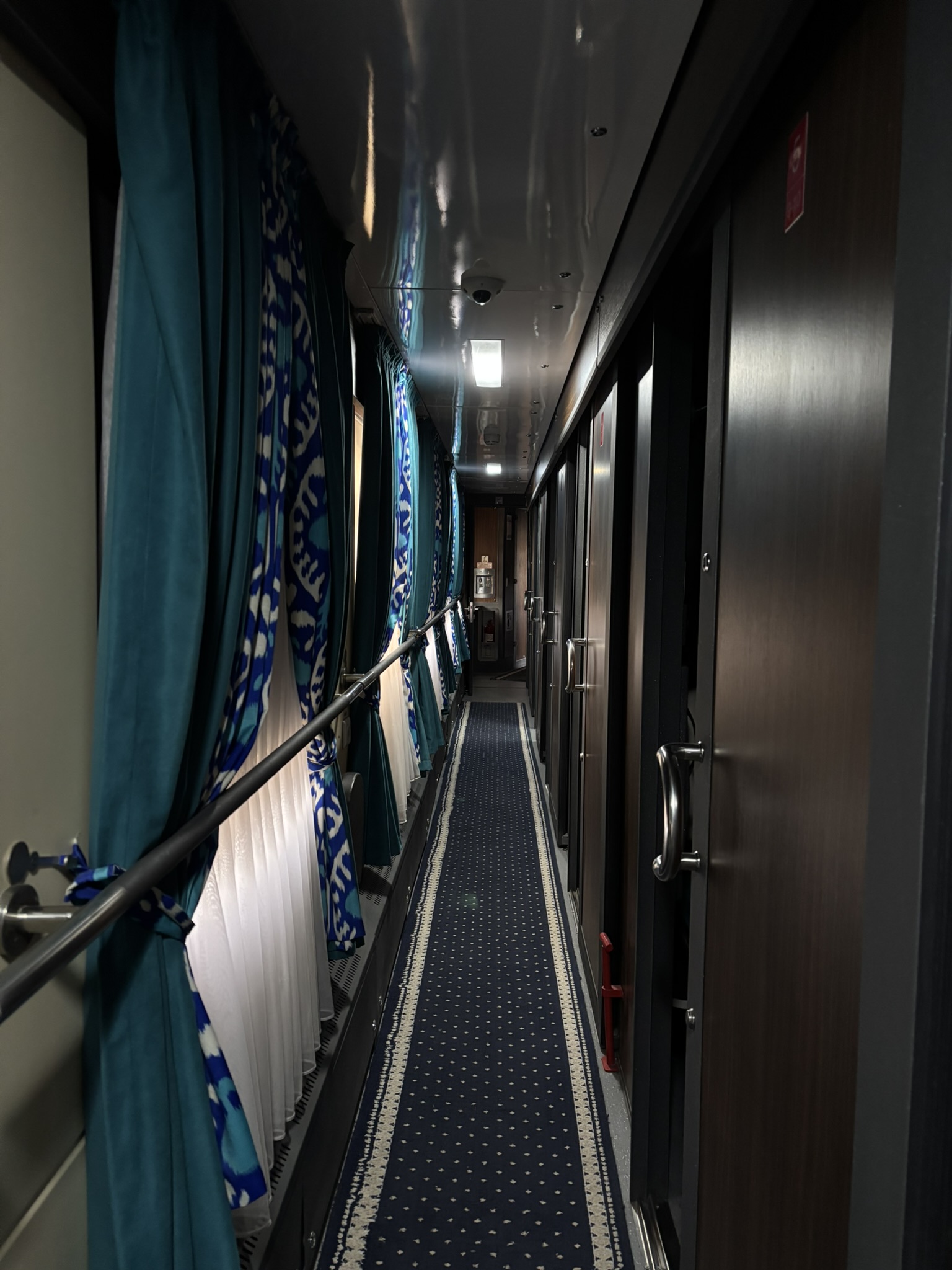 Wij reisden van Bukhara naar Khiva in een Coupe, een afgesloten cabine met vier bedden (twee stapelbedden), die we deelden met twee andere reizigers. Deze rit kostte ons omgerekend 31 euro in totaal. Voor de terugweg kozen we een SV-cabine, de meest luxe optie met slechts twee bedden, die we alleen met z’n tweeën hadden. Hiervoor betaalden we ongeveer 50 euro in totaal.