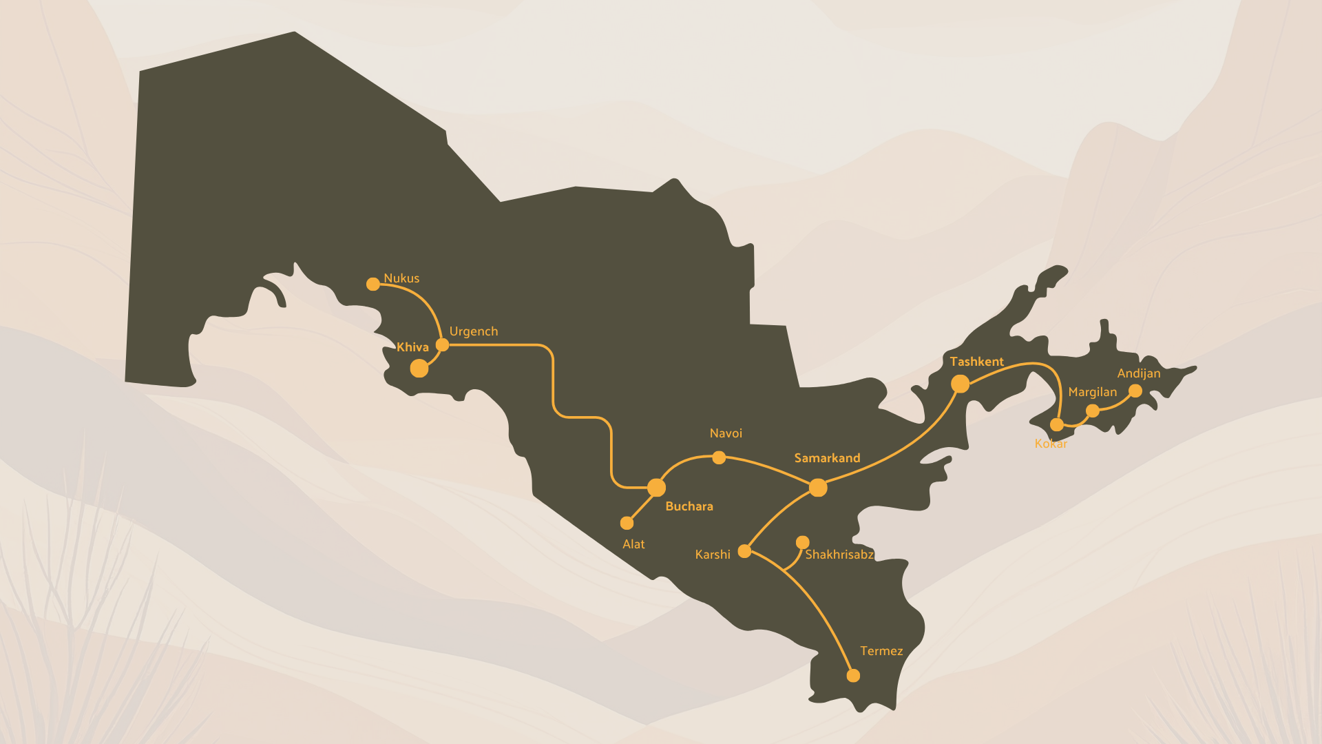 Of je nu naar de historische steden Tashkent, Samarkand, Bukhara en Khiva reist, of juist stopt bij kleinere tussenstations, met de trein ervaar je het land op een ontspannen manier.