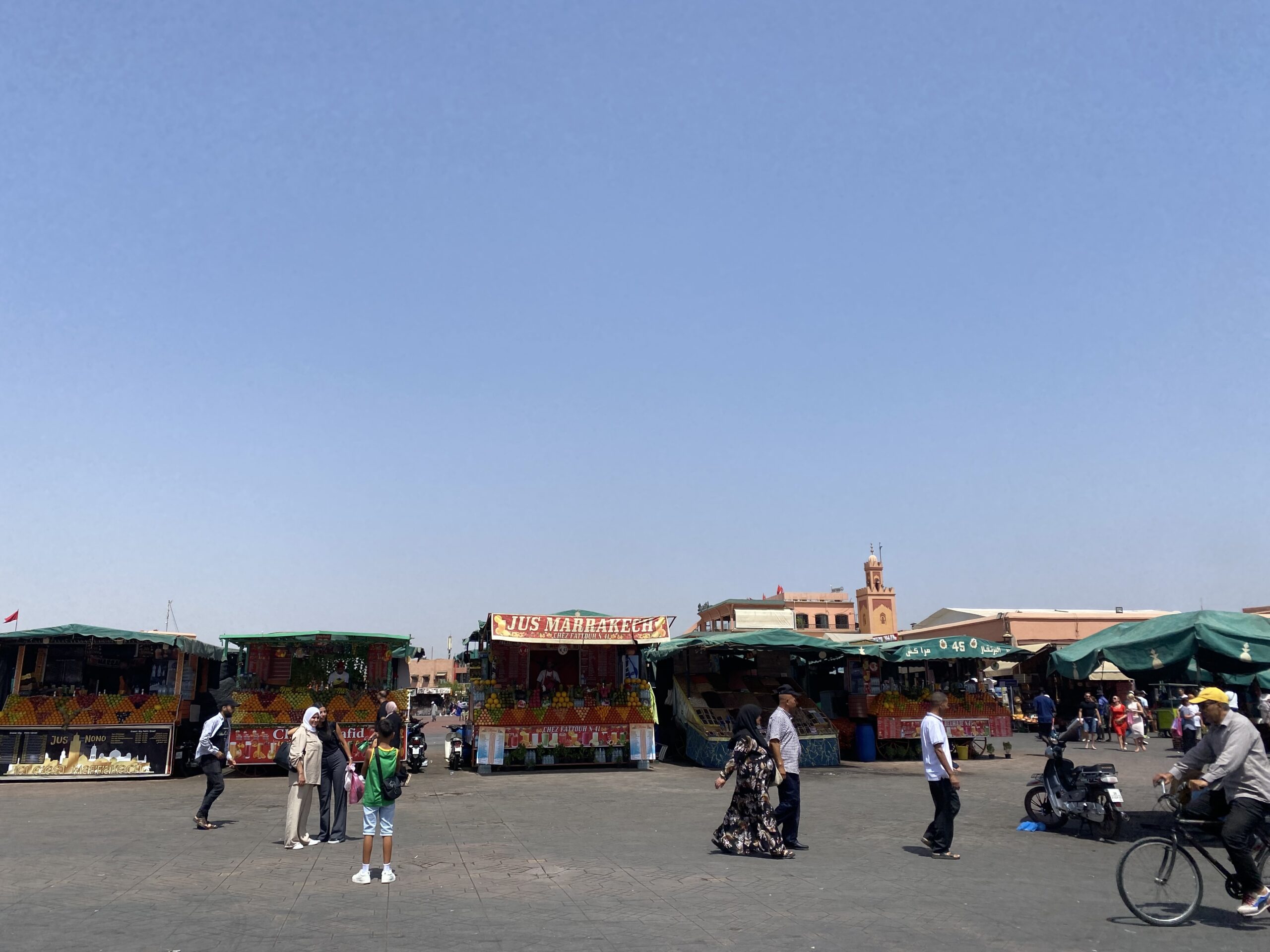 De souks rondom het plein zijn een belevenis op zich; je kunt hier eindeloos dwalen tussen leer, tapijten, kruiden en keramiek. Onderhandelen hoort erbij en maakt het bezoek extra leuk. Het wordt vaak als een spel gezien, en mensen zijn teleurgesteld als je niet meedoet.