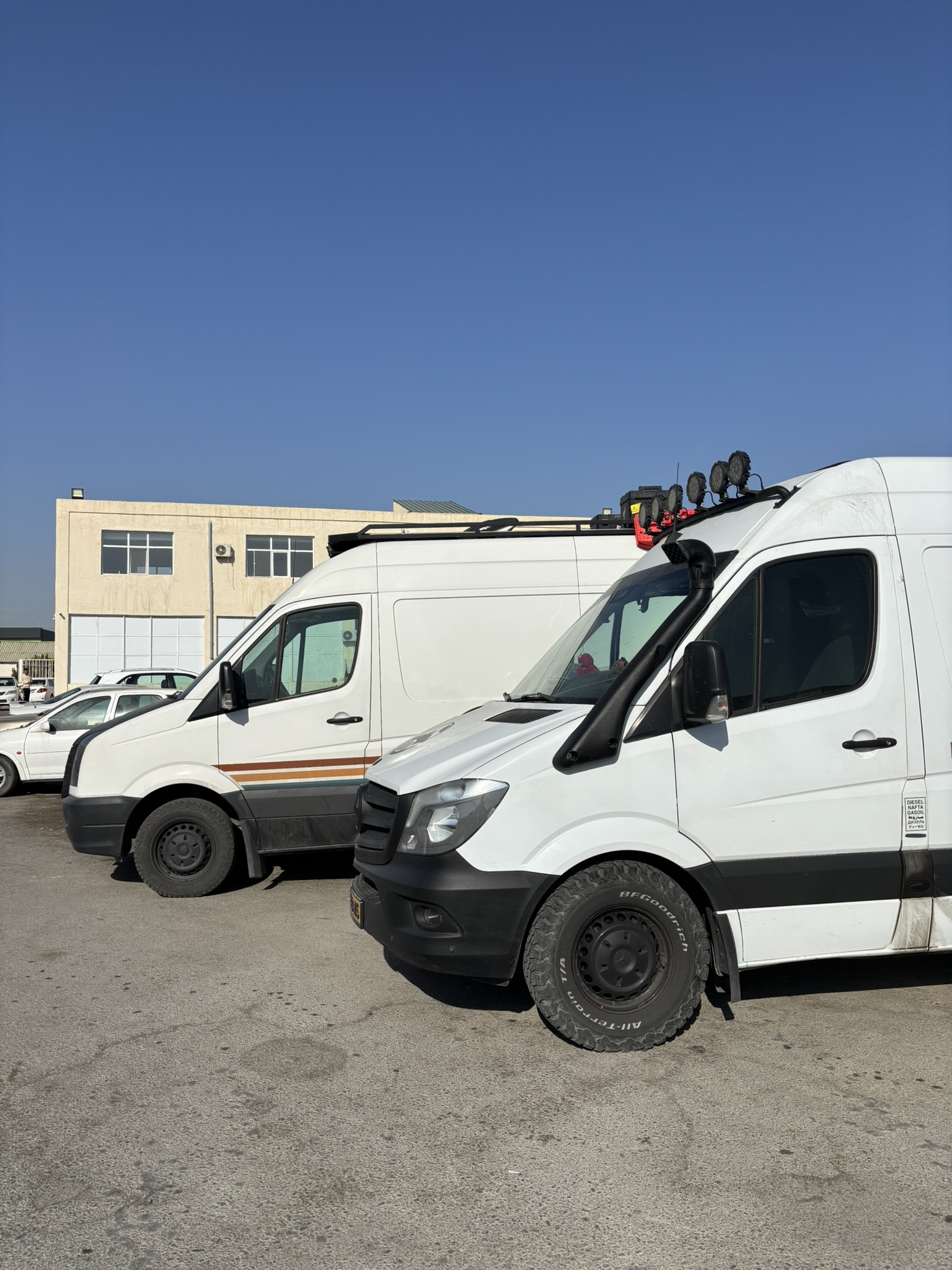 De import van de buscamper was de grootste extra kostenpost. Voor ons voertuig betaalden we €365. Hierbij wordt ook gekeken naar het aantal kilometers dat je in het land gaat rijden. Dit heeft te maken met de extreem lage brandstofprijzen in Turkmenistan. Officieel is de wisselkoers 1 dollar voor 4 manat, maar op de lokale markt kregen wij 1 dollar voor 19 manat. Hierdoor kostte diesel omgerekend slechts vier cent per liter! Om dit te compenseren rekent de overheid vooraf extra kosten bij de grens.