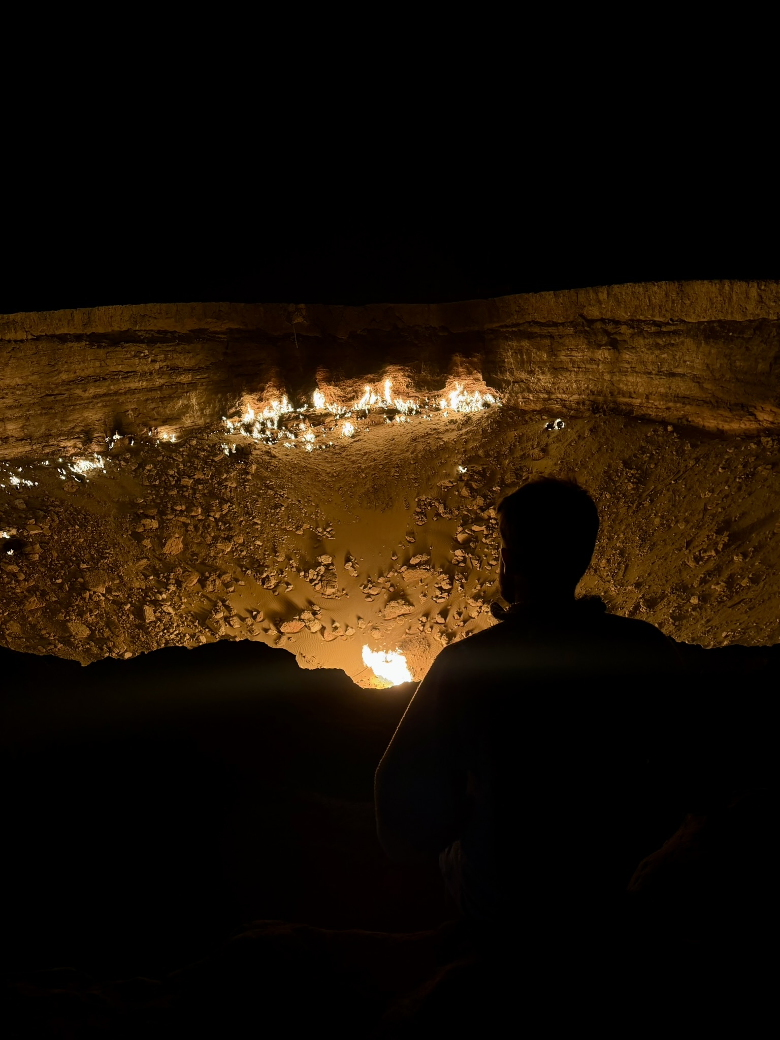 Het absolute hoogtepunt van de reis volgde: de Gates of Hell (Darvaza Gas Crater). Deze enorme gaskrater brandt al sinds 1971 en is zowel overdag als ’s avonds spectaculair, maar vooral in het donker is het bijna onwerkelijk.