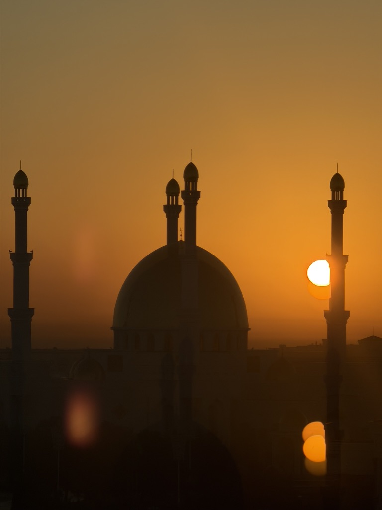 Na zonsondergang bezochten we de indrukwekkende Turkmenbasy Moskee. De verlichting in de avond maakt dit gebouw nog indrukwekkender. Na afloop van de dienst mochten we ook even binnen kijken, wat een bijzondere ervaring was.