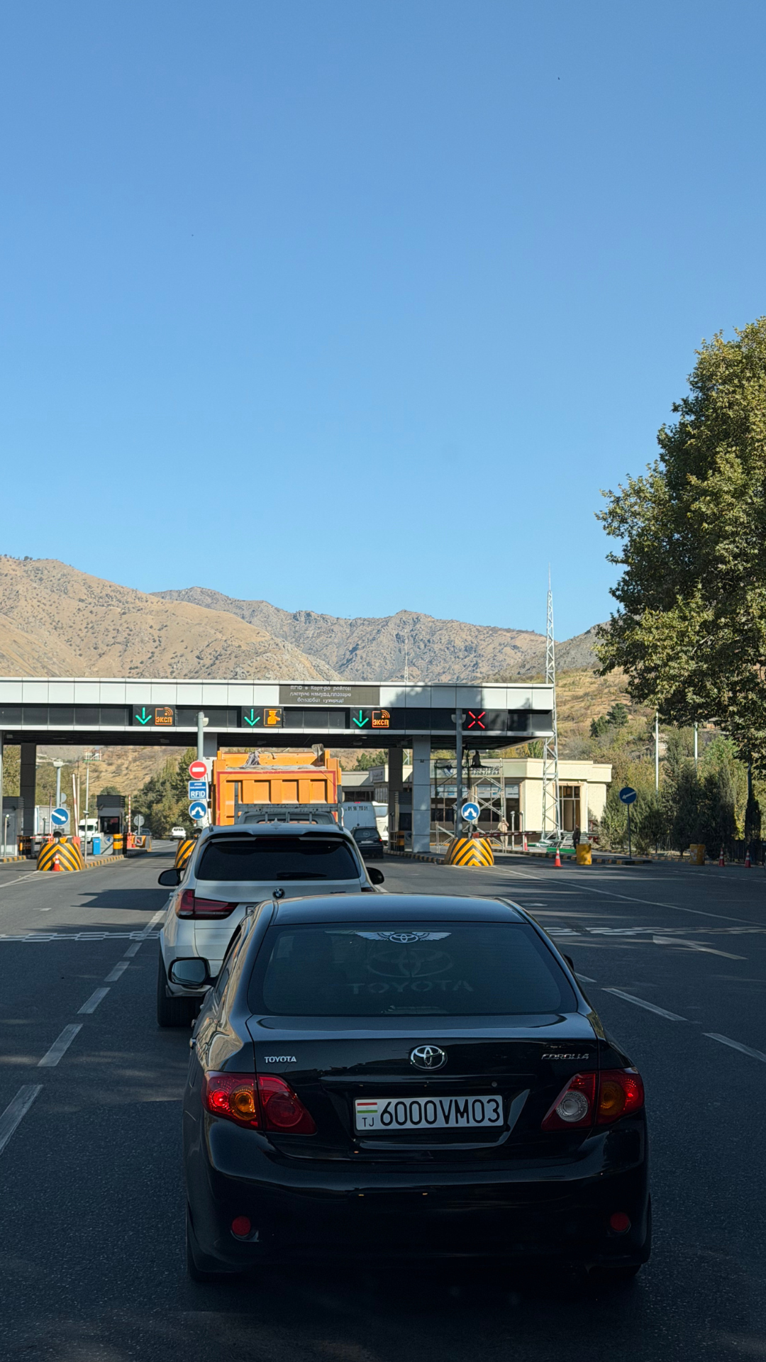In totaal deden wij ongeveer 3 tot 4 uur over de grensovergang. Dat is aan de lange kant vergeleken met andere landen in Centraal Azië, maar nog steeds goed te doen met wat geduld. Het was vooral druk, met veel lokaal verkeer en vrachtwagens. Van andere reizigers hoorden we dat de grensovergang richting Samarkand vaak nog drukker is en dat wachttijden daar kunnen oplopen.