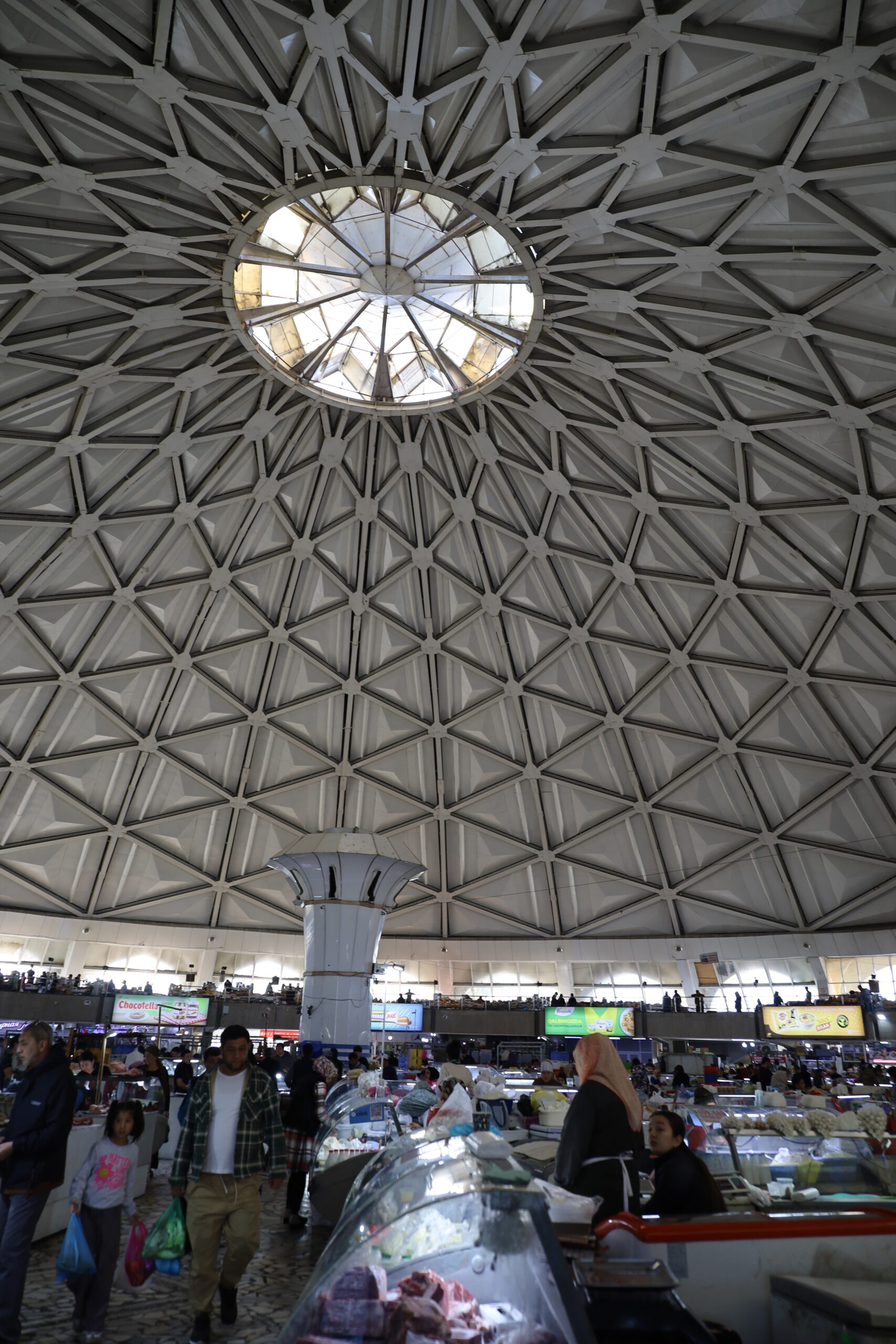 Onder de grote turquoise koepel vind je kraampjes met fruit, noten, kruiden, brood en lokale specialiteiten. Buiten de hal gaat de markt nog verder met kleding, huishoudelijke spullen en streetfood. Het is druk, chaotisch en levendig. Dat maakt Chorsu juist zo leuk om te bezoeken.