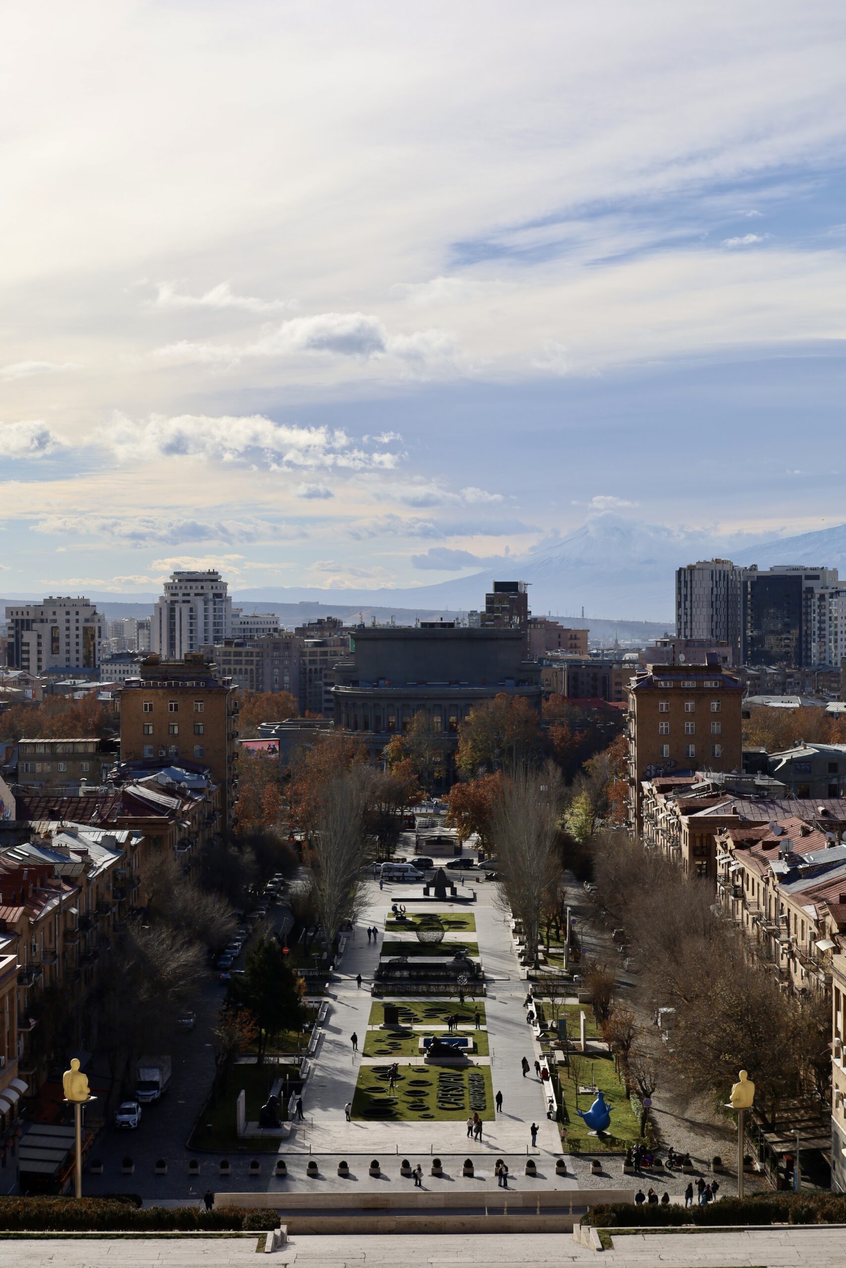 Hoe verder je afdaalt, hoe levendiger het wordt. Beneden aangekomen sta je midden in het centrum van Yerevan.